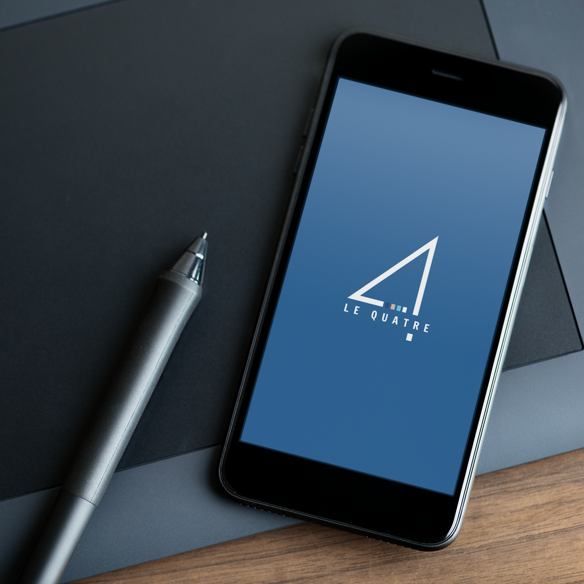 Création d’un logo graphique et minimaliste, basé sur une interprétation géométrique du chiffre 4, symbole de structure, de rigueur et de fondations solides.