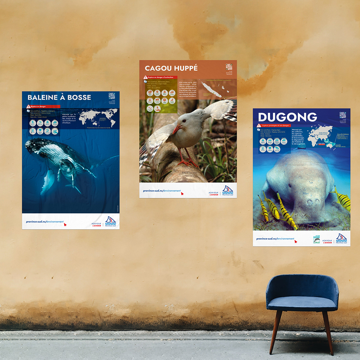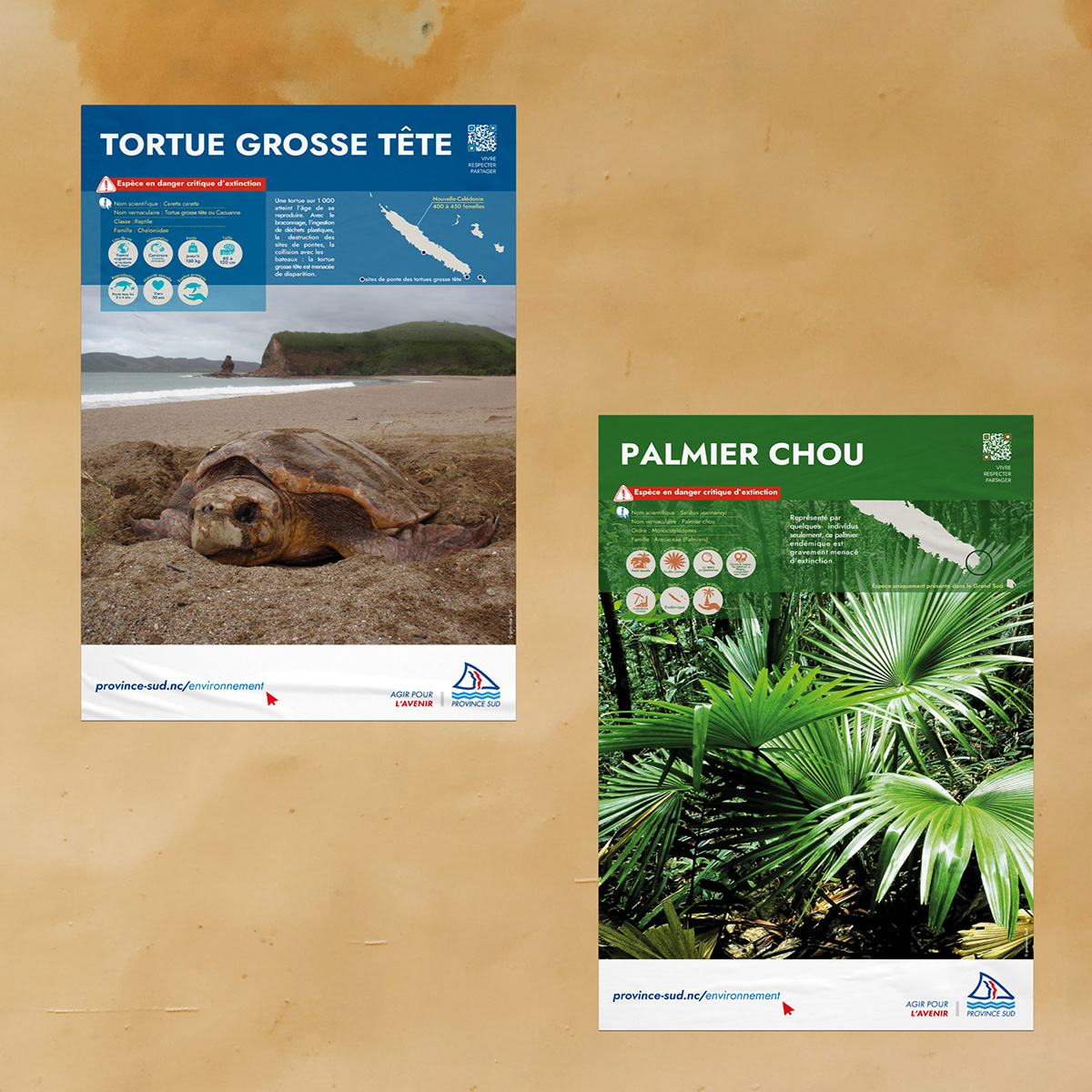 mise en page de posters pédagogiques sur la faune et la flore néo-calédonienne